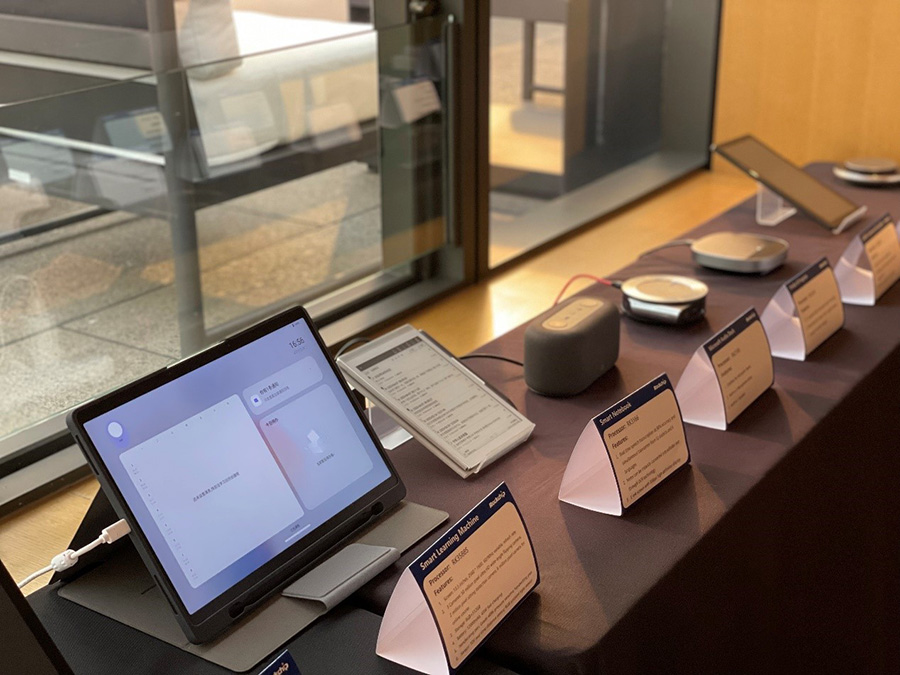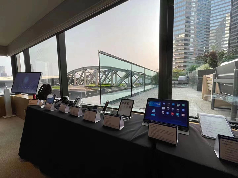在消费电子展区,展示了瑞芯微在智慧办公、智慧教育、智慧家居的芯片应用,如:ARM PC、笔记本、办公本、会议音箱、词典笔、网课机、智能台灯、学习机、机器人、扫地机等,新兴消费电子产品如:移动大屏电视、AR/VR、直播机等。
